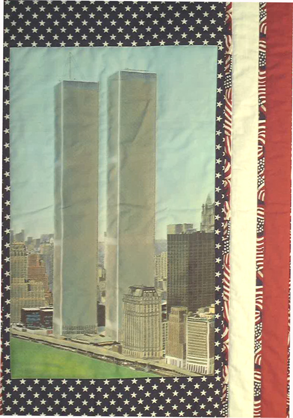 Machine pieced, hand appliquéd, hand painted, machine quilted cotton, woven picture of the World Trade Center. | |||