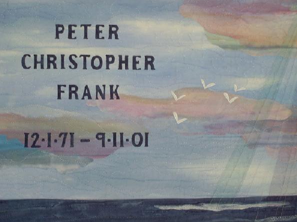 This memorial panel was made to honor Peter Frank. Peter was engaged to be married to my cousin. Their wedding would have been in October, 2001.